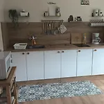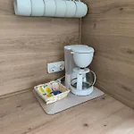 L'angolo cottura attrezzato della villa è dotata di un microonde, una macchina per caffè e tè e un frigo.